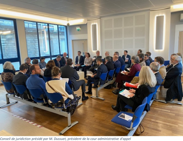 Le conseil de juridiction qui réunit outre les parlementaires, les représentants de l’État dans chaque département du ressort de la cour, mais également l’ensemble des bâtonniers, des représentants de collectivités territoriales, des universités, l’association des experts judiciaires… est destiné à permettre à la juridiction de présenter, notamment, un point de droit sur lequel elle souhaite attirer l'attention des participants, ainsi que les enjeux et les défis auxquels la juridiction est confrontée, de même que les partenariats qu'elle met en place pour développer les échanges avec certains publics.