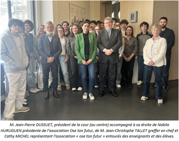 Par convention du 11 décembre 2023, renouvelée par un avenant du 11 décembre 2025, et dans le cadre de la politique menée en faveur de l’égalité des chances, la cour administrative d’appel de Nantes s’est engagée, avec l’association « ose ton futur », soutenue par le rectorat, dans l’organisation d’un « passeport découverte » de la juridiction administrative.